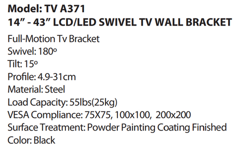 Key Features: Suitable for most 14”-43” flat panel LCD & LED Televisions