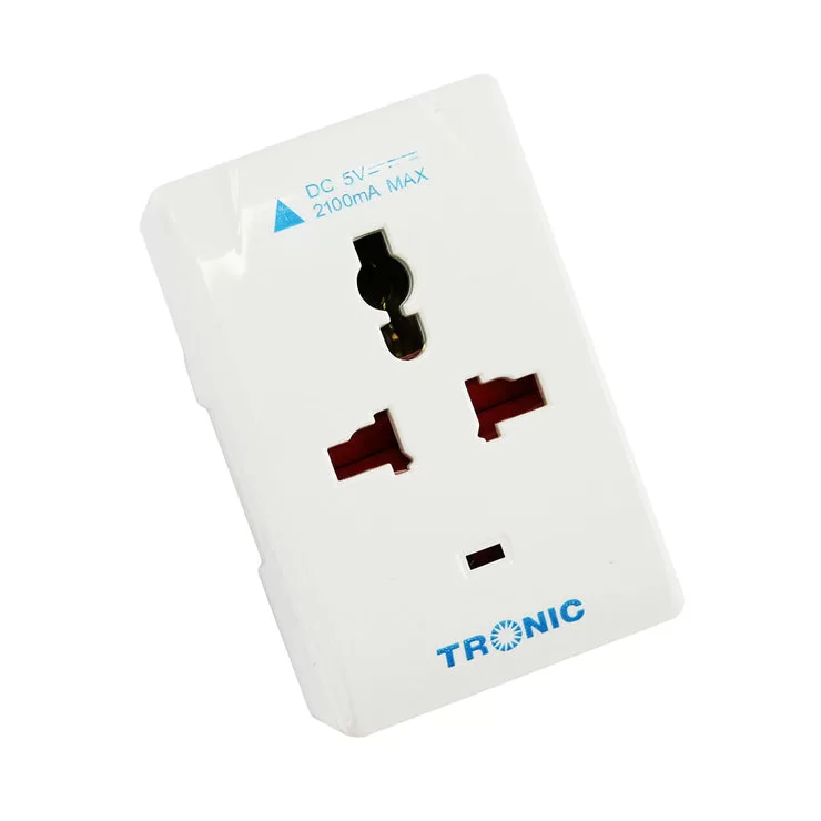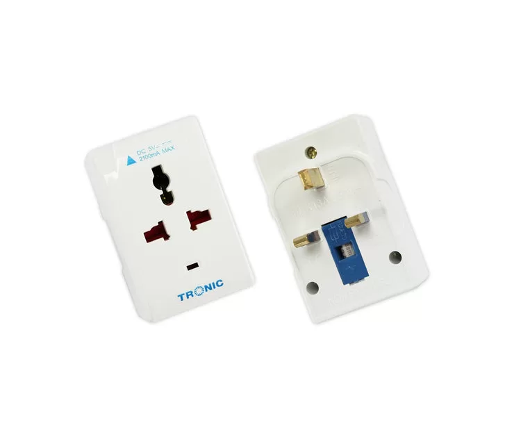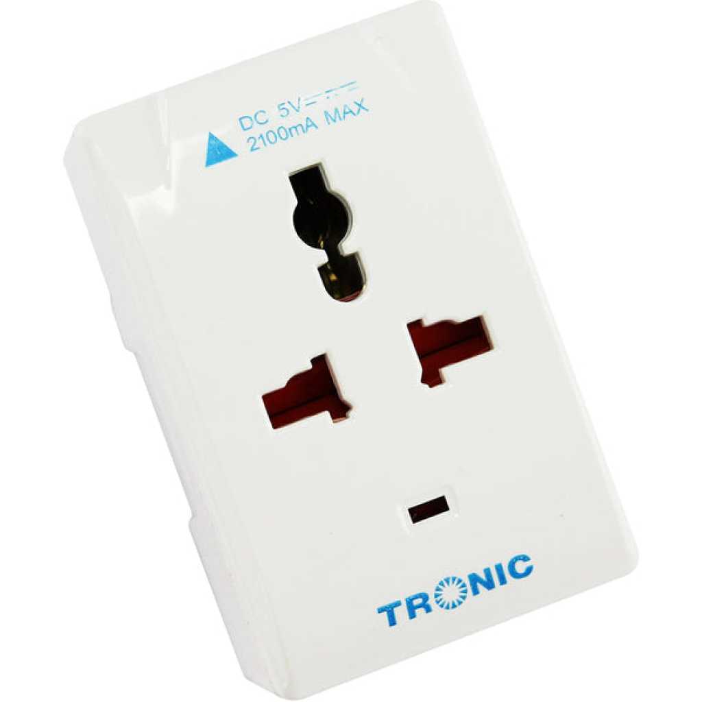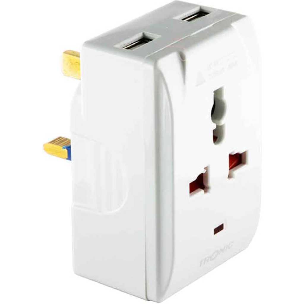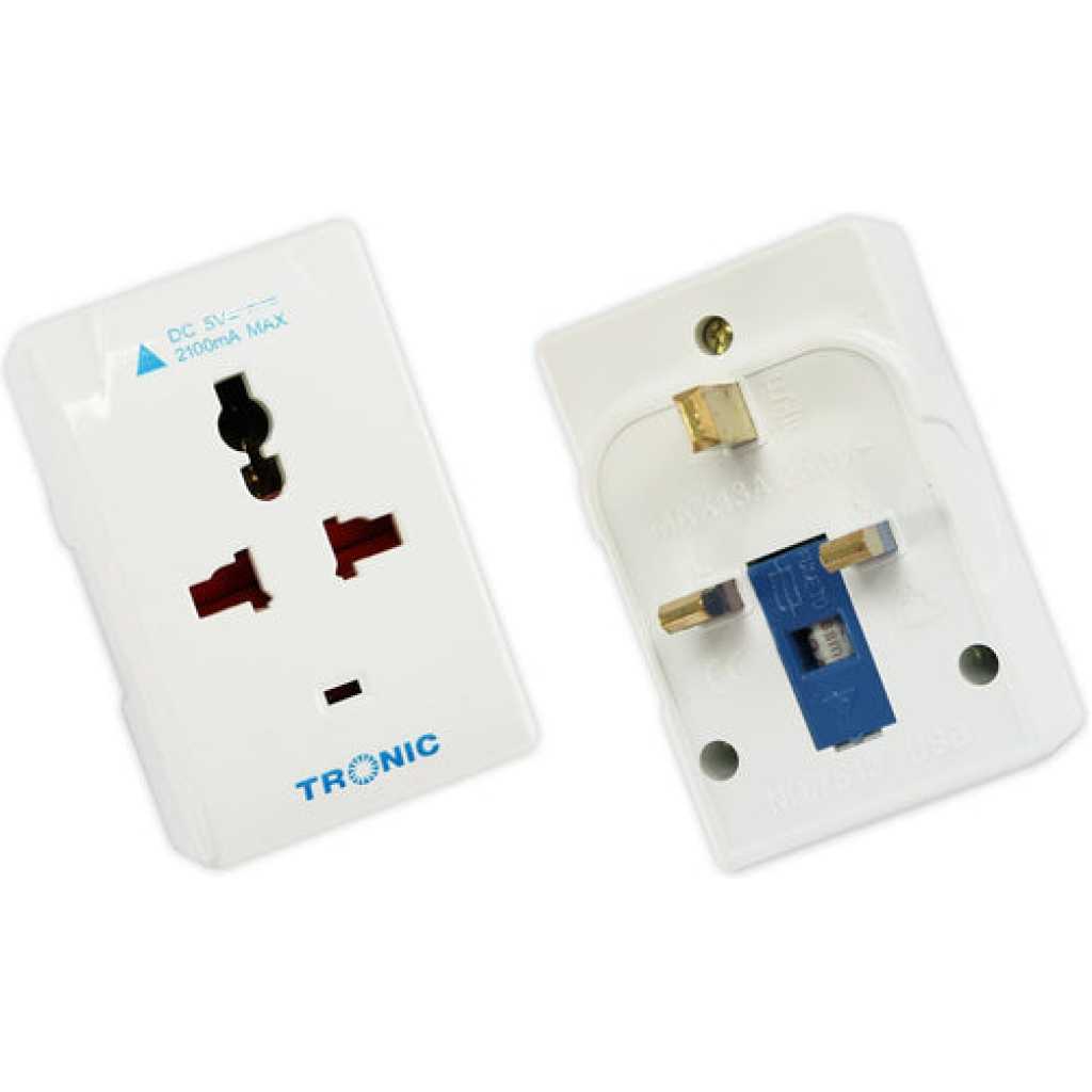 Tronic 13A multiplug allows you to plug in more than one appliance at a time with its 3 pin sockets, also has a universal type socket meaning it can fit both a round pin or the square ones. Additionally, it has two USB ports to charge your mobile devices. Additional Information Colour White Amps 13A Voltage AC 110-240 Installation Plug-in and Use Material PVC Warranty 1 Year Additional Features 2 USB ports, 3-pin universal socket Application All Domestic use Key Features: Tronic 13A multiplug allows you to plug in more than one appliance at a time with its 3 pin sockets, also has a universal type socket meaning it can fit both a round pin or the square ones. Additionally, it has two USB ports to charge your mobile devices.