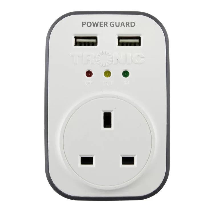 The Power Guard protects your equipment by disconnecting the power when it goes above or below an unacceptable level because High or lower voltage will certainly damage any electrical or electronic equipment. It also comes with two USB ports to charge your devices. Key Features: The Power Guard protects your equipment by disconnecting the power when it goes above or below an unacceptable level because High or lower voltage will certainly damage any electrical or electronic equipment. It also comes with two USB ports to charge your devices.