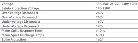 The Television Guard protects your Television or equipment by disconnecting the power when it goes above or below an unacceptable level because High or lower voltage will certainly damage any electrical or electronic equipment. Additional Information Colour White and Grey Amps 13A Voltage AC 220-240 Item Dimensions H 140mm x W 60mm Installation Plug-in and Use Material Plastic Warranty 1 Year Additional Features 10-Sec delay Over-voltage Disconnect (260V) Over-voltage Reconnect (250V) Under-voltage Disconnect (160V) Under-Voltage Reconnect (170V) Mains Spike Response Time >10ns Application For Protecting your Television Key Features: The Television Guard protects your Television or equipment by disconnecting the power when it goes above or below an unacceptable level because High or lower voltage will certainly damage any electrical or electronic equipment.