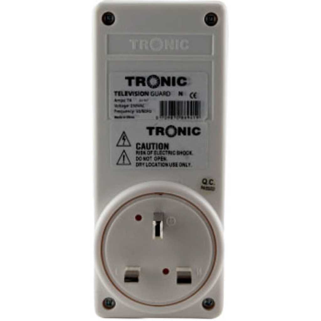 Tronic Television Guard protects your Television by disconnecting the power when it goes above or below unacceptable level because power fluctuations will certainly damage any electrical or electronic equipment. Additional Information Colour White Amps 7A Voltage AC 220-240 Item Dimensions H 140mm x W 60mm Installation Plug-in and Use Material Plastic Warranty 1 Year Additional Features Application For Domestic use for Protecting your Television Key Features: Tronic Television Guard protects your Television by disconnecting the power when it goes above or below unacceptable level because power fluctuations will certainly damage any electrical or electronic equipment.