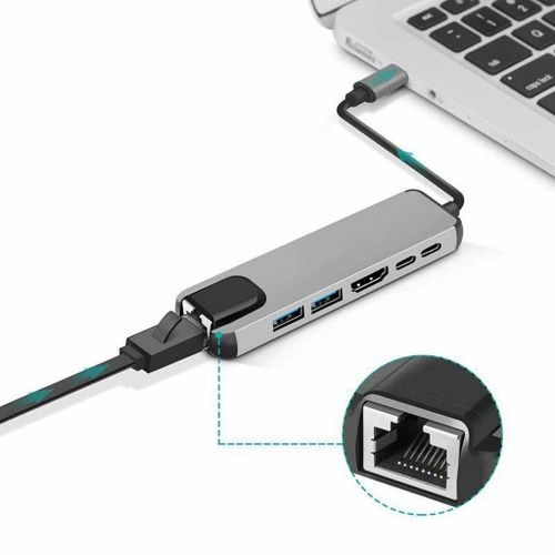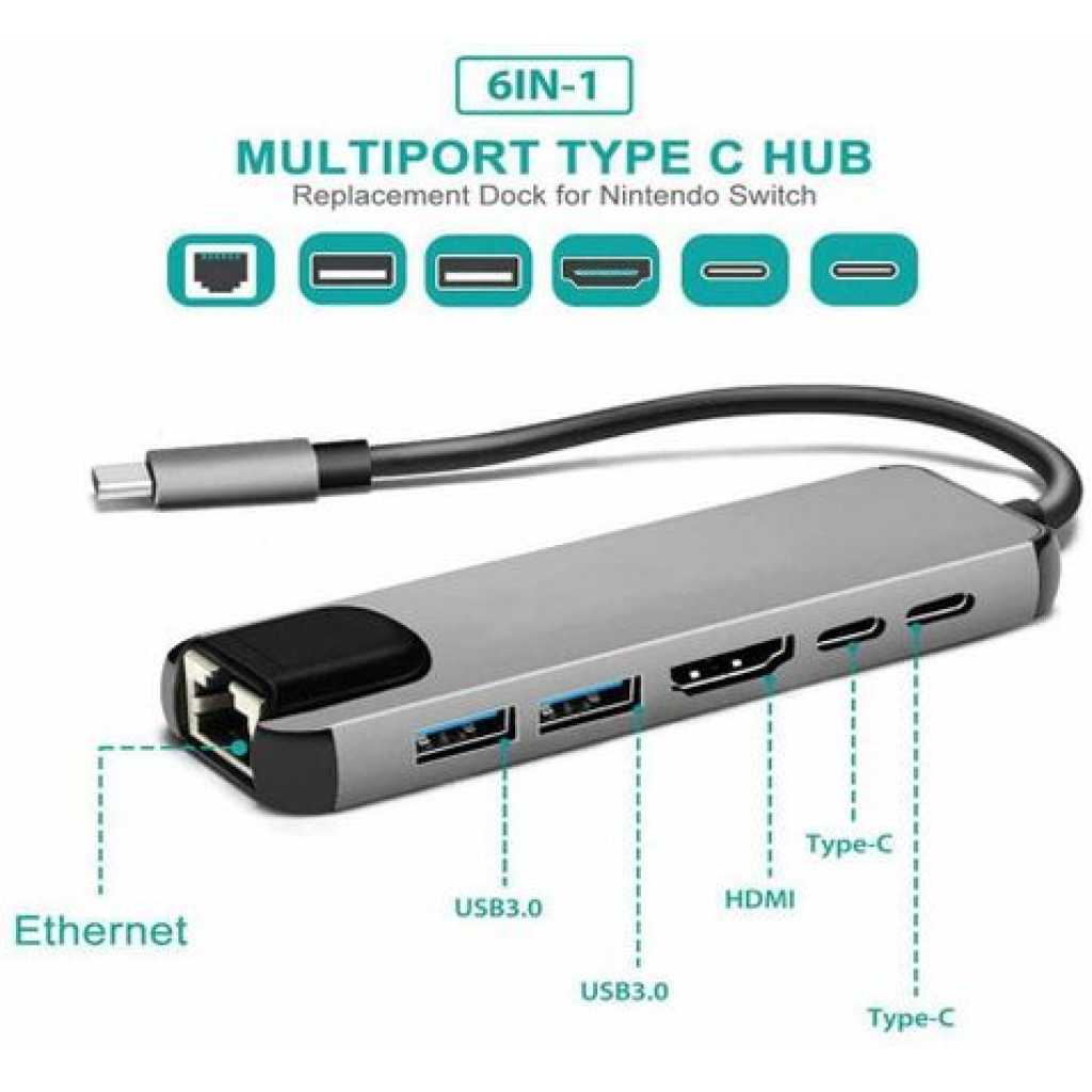 6 in1 Multiport USB C Adapter: USB-C Hub with 4K HDMI video output, 2 x USB 3.0 female ports, 1000 Mbps Ethernet adapter and, 2 USB-C PD charging port. 4K UHD HDMI Output, Resolution: 4K UHD or full HD 1080p. Fast Gigabit Ethernet Dongle: Ensure Stable And Fast Wired Network Connection, With Max Speed Up To 1000mbps Just plug and play, and will not brick the switch. High-end material adopted to ensure high durability and best-in-class experience; pairs with your upscale laptop perfectly. Extremely compact design makes it easily portable and saves desktop space. Specification: Type:6 in 1 USB C Hub Multiport Adapter Material: Aluminum alloy HDMI Output: Resolution Up to 4K UHD Gigabit Ethernet: Up to 1000Mbps USB-C Charging Port: Up to 87W power delivery. Package Includes: 1x 8 in 1 USB C Hub Multiport Adapter In line with Type‑C interface specification of the built‑in conversion chip, plug and play. RJ45 port can support maximum ethernet speed of 100 mbps. Type‑C female port can offer 20V at 3A and maximum support 87W power adapter. can support 4K x 2K (3840 x 2160) 30HZ / 4K x 2K (3840 x 2160) 60HZ, it can be backward compatible with 1080P 720P, etc. Type‑C male is compatible with thunderboil 3, ensuring that the host Type‑C port on the equipment complies with the USB3.0 / 3.1 specification.