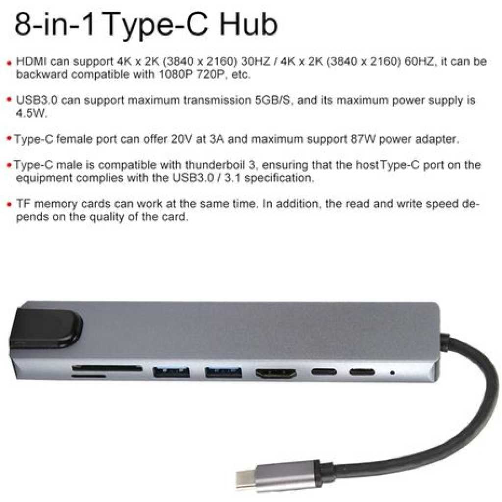 Key Features: Kindly refer the product description before buying the product. 8 in1 Multiport USB C Adapter: USB-C Hub with 4K HDMI video output, 2 x USB 3.0 female ports, 1000 Mbps Ethernet adapter and, 2 USB-C PD charging port. 4K UHD HDMI Output, Resolution: 4K UHD or full HD 1080p. Fast Gigabit Ethernet Dongle: Ensure Stable And Fast Wired Network Connection, With Max Speed Up To 1000mbps Just plug and play, and will not brick the switch.