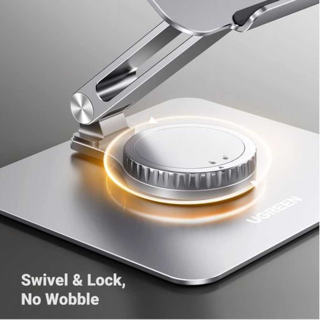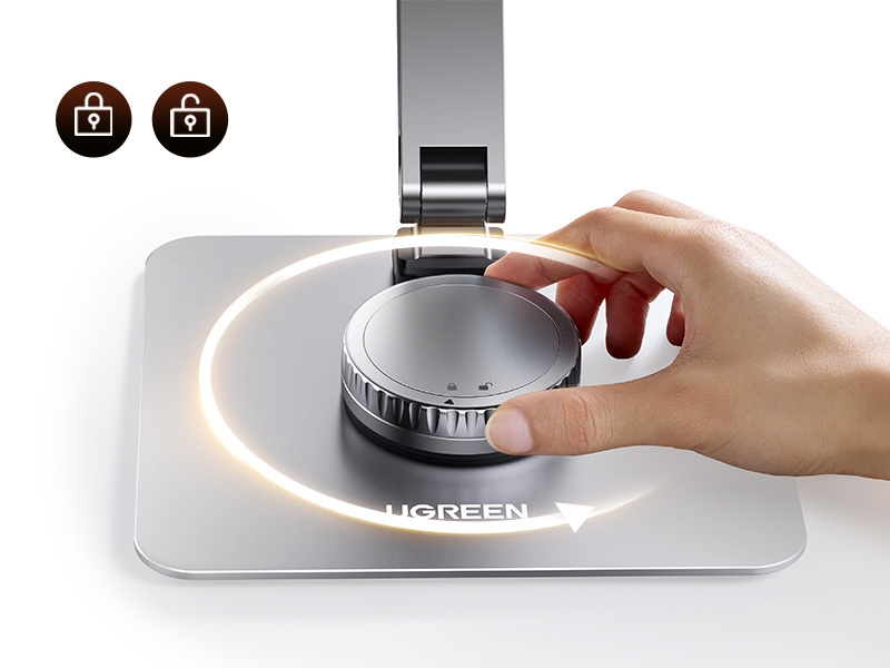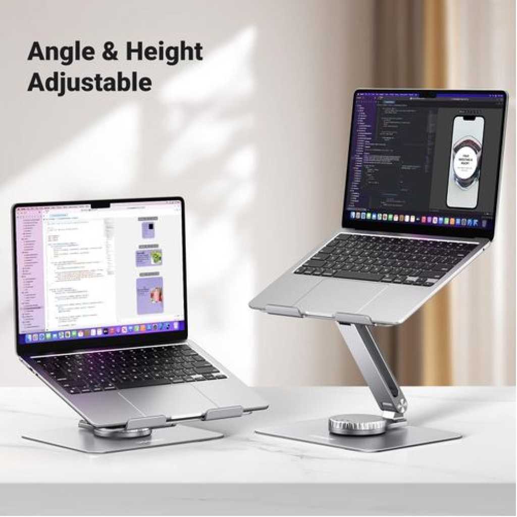 UGREEN Laptop Stand 360 Rotating Adjustable Share Your Idea with Partners in the Office Featuring a 360° rotatable axis on the base, UGREEN laptop stand holder allows you to swivel your laptop to any side more flexibly. It enables you to share your PC screen to your partners in the meeting. Elevate Your Laptop & Elevate Your Life Rotating stand can elevate your laptop to eye level, eliminating neck and shoulder strain, and alleviating the pressure on your wrists and arms by providing a comfortable typing angle. Find Your Comfortable Angles This laptop stand for desk could be easily adjusted to your preferred viewing angle with ergonomic design. It effectively ease your neck pain by elevating your laptop to your eye level to fix your posture. Release & Lock Easy to use and works great for ideas sessions when collaborating with others over video chat or calls. Used as laptop standing desk accessories for office. Larger Base & Bracket, No Fear of Tipping Over Featuring a 360° rotatable axis on base, UGREEN laptop stand for desk allows to swivel your laptop to any side more flexibly. It enables you to share PC screen to your partners in the meeting. With ergonomic design, this laptop holder effectively eases neck pain by elevating laptop to eye level. Key Features: 360 Degree Rotation: Featuring a 360° rotatable axis on the base, UGREEN laptop stand for desk allows you to swivel your laptop to any side more flexibly. It enables you to share your PC screen to your partners in the meeting, more convenient and practical for office and home. Ergonomic Design: This laptop stand holder could be easily adjusted to your preferred viewing angle. It effectively ease your neck pain by elevating your laptop to your eye level to fix your posture. You can choose different angles and rise it up higher or lower to meet your needs. Stylish and Stable: This laptop desk stand is made of premium aluminum alloy. With the thicken base and enhanced arm, this sturdy computer stand supports up to 11 lb and holds your notebook more securely, no worry about tipping over. Broad Compatibility: Work with all laptops up to 17.3-inch, the adjustable laptop stand is compatible with MacBook Pro 13″ 14″ 16″, MacBook Air, Microsoft Surface Book, Lenovo Ideapad 3, Acer Aspire 5, ASUS TUF F15 Gaming Laptop, HP Notebook, Dell Chromebook, Samsung Galaxy Book, etc. Keep Laptop Cool: The open cutout design of the aluminum stand provides good ventilation and airflow to prevent your laptop from overheating.