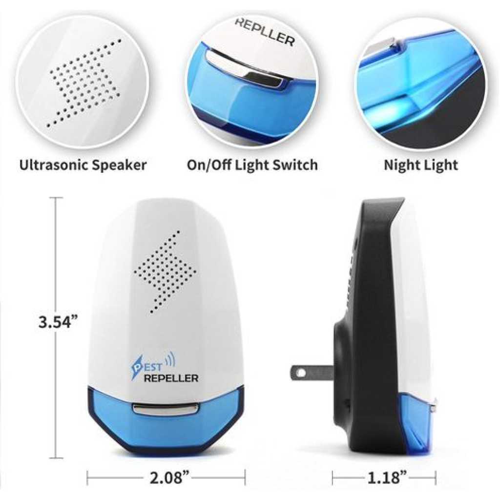 Ultrasonic Electronic Pest Repeller, Silent Electronic Pest Repellent Plug in Indoor Pest Control, Insect Mosquito Killer Machine, Mosquito Repellent for House, Office, Hotel- Multicolor 100% SAFE FOR KIDS AND PETS, PROTECT YOUR FAMILY IN A HEALTHY AND PEAFUL WAY – SROKER pest repellents are 100% safer than traditional mosquito repellents. Many people are naturally worried about the safety of their pets when using an insect-repellent device. Studies found that cats and dogs, although they can hear the waves, ultrasonic sound is inaudible to humans and household pets. No poison, smell, or chemicals, significantly safe and harmless for kids, pregnant women, and pets. HOW TO USE AN ULTRASONIC REPELLER IN YOUR HOME – Pest repellents are simple to use. All you do is plug pest-repellent ultrasonic in an electrical outlet and it will start to repel the pests when the blue night light is on. The repeller should be placed in a location where its noise will not be affected by walls and furniture. It is recommended to install this pest repeller at between 30-50 inches away from the floor for flying pests and 10-30 inches from the ground for crawling pests. 360°PROECT YOUR HOME WITH NO DEAD ZONE – The effective coverage of each pest control is up to 1600 square feet. Since ultrasonic sound can not penetrate walls and solid objects, ONE ROOM ONE UNIT IS RECOMMENDED. 360 degree protect your home with no dead zone. It’s widely used in homes, warehouses, offices, restaurants, supermarkets, hospitals, granary, etc. NO RISK PURCHASE – The typical results can take 1-2 weeks depending on the severity of the pest infestation. Mostly can see the electronic pest repeller results within 3-4 weeks! Then we can say goodbye to pests and mice!
