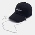 Pouze US$11.19, nakupujte Unisex bavlněná kšiltovka s jednobarevným vzorem, vyšívaným písmem, dlouhým řetězem a dekorací, vhodná pro všechny na Banggood.com. Nakupujte módní hats & caps online.
