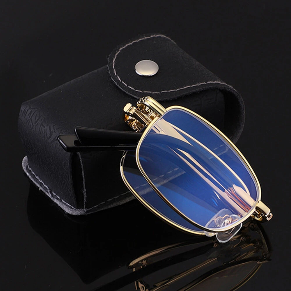 Unisex Transportabel Fuldrans Ramme Dobbeltlys Myopia Hyperopia Briller Foldbar Anti-Blå Læsebriller Med Læderetui