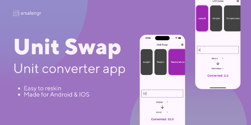 Unit Swap - Flutter Unit Converter App. Digital tool that allows users to easily convert measurements between different units across various categories