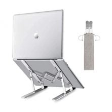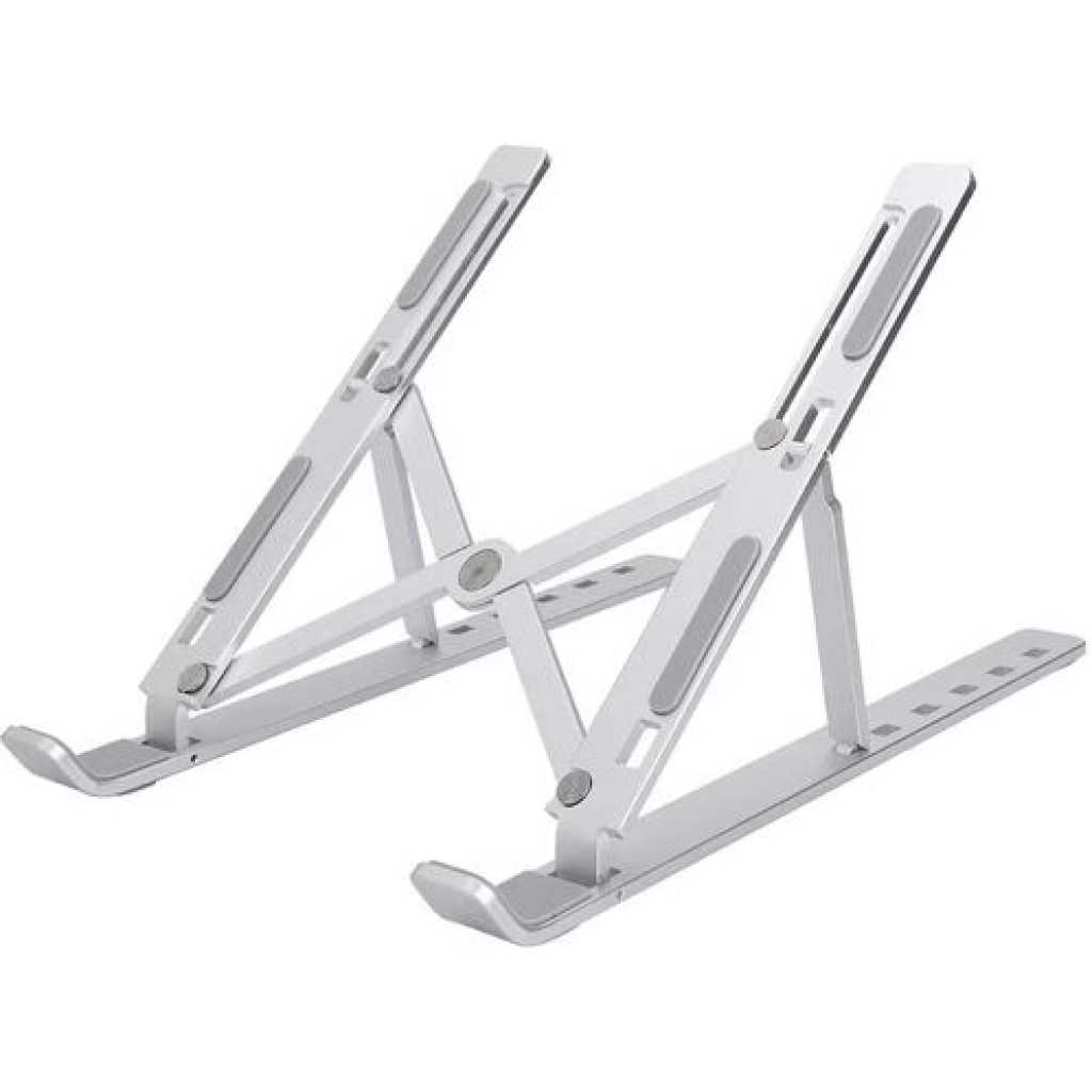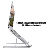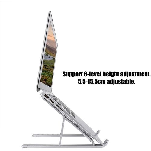 Adjustable Laptop Stand Foldable Aluminium Alloy Holder Mount For Up To 15.6 Inch PC ADJUSTMENT : Support four-level angle adjustment. The laptop stand is made of sturdy aluminum, you can incline at different angles and stand it up higher or lower depending on your needs, It keeps your computer up high so you have more space on the desk for papers and other stuffs. ERGONOMICS : Master design is good for adjusting an ideal height for typing, watching and sitting properly while supporting your back and neck with a comfortable posture. It will relieve the stiffness of your back and neck. Book holder. Easy and comfortable to read. Master design. Portable storage. Mini size and convenient to use. HIGH QUALITY: Adopt Aviation grade aluminum alloy with six-level exquisite crafts.With the texture and aluminum material, this tablet stand is more stylish and durable. Adopt Aluminum Alloy material. Integrated anodized sandblasted alloy aluminum structure. STEADINESS: Silicone pads on the bottom keep the stand from sliding and be more stable. The protective hooks ensure your computer does not slide off the stand. VENTILATION: Floating heat dissipation structure. The back is completely suspended and unobstructed, which is more conducive to computer ventilation. Key Features: Foldable design Portable and easy to store. Support 6-level height Adopt non-slip silicone pad Floating heat dissipation structure Strong and stable holder 3D surface anti-scratch protection Support for laptops up to 15.6-inches
