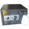 The safe is so durable, fire proof and very difficult for the intruder to break into because it has got both the key and the combination mechanisms. Key Features: Weight:37kgs Durable Secure Has combinations and a key Fire proof Has 2 compartments inside