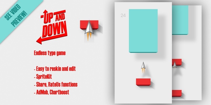 Up And Down - iOS Game Source Code. Beat your results in this game, you need tap for fly in down of game level, and cancel it for flying on top layer of game level.