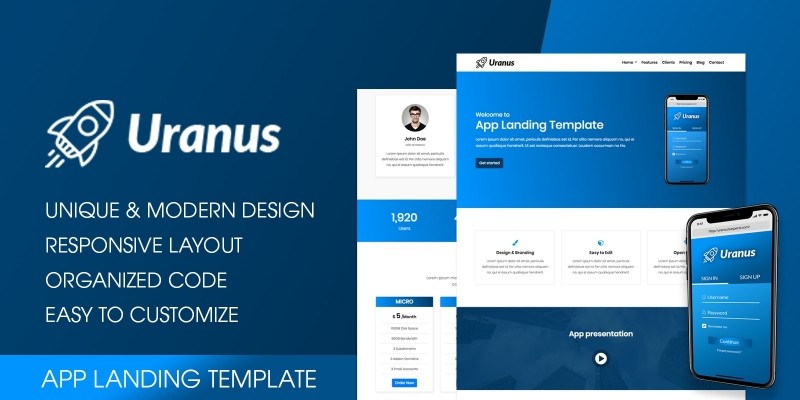 Uranus - App Landing HTML Template. Awesome App landing template for any kind of App