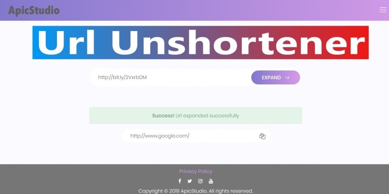 URL Unshortener PHP Script. Url Unshortener.ExpandURL is a link unshorting php script.