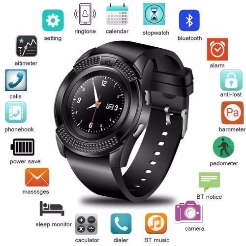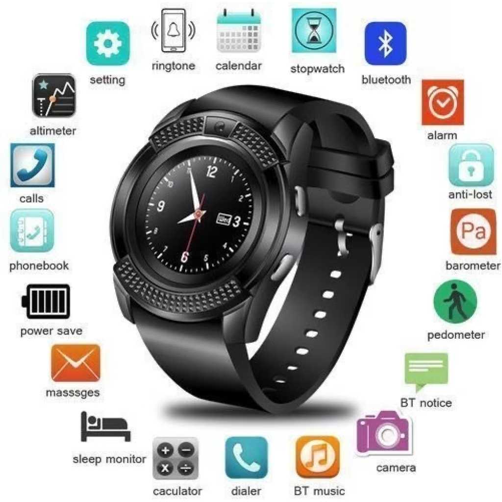 Key Features: V8 Round Screen Bluetooth Smart Watch With Sim Toolkit – Black. Smartwatch Round Screen IP65 Bluetooth Smart Watch With Sim Toolkit(Black) Color: Black