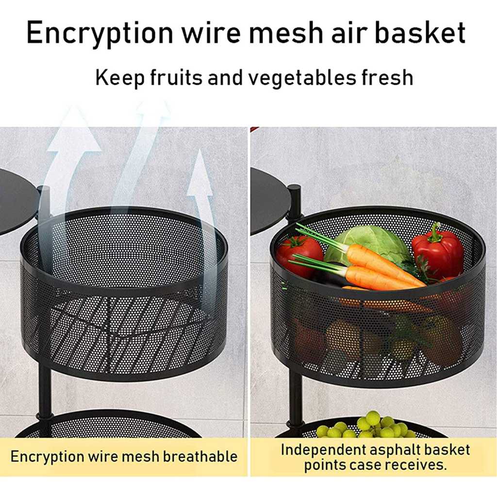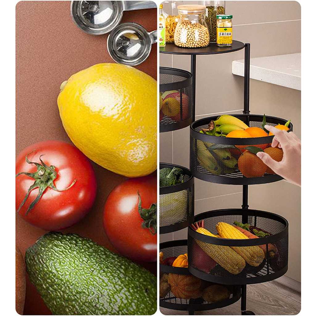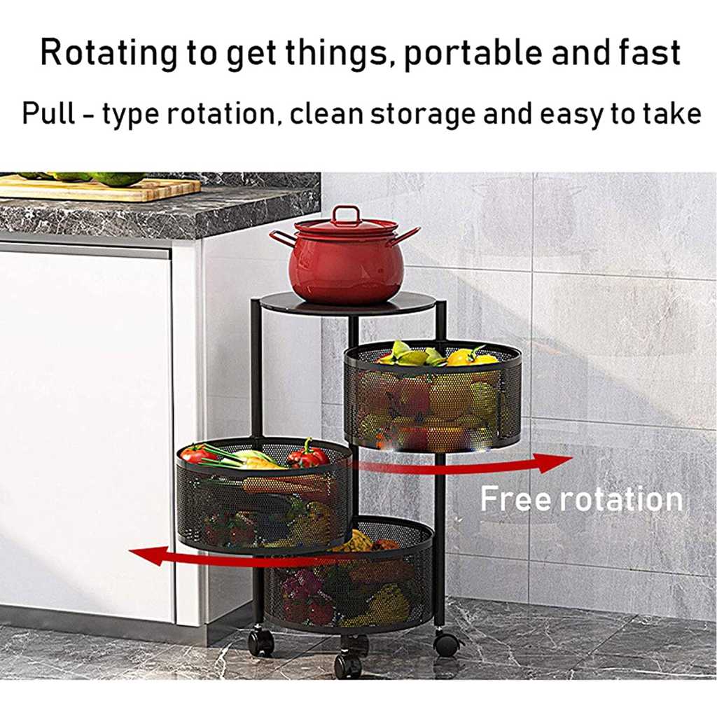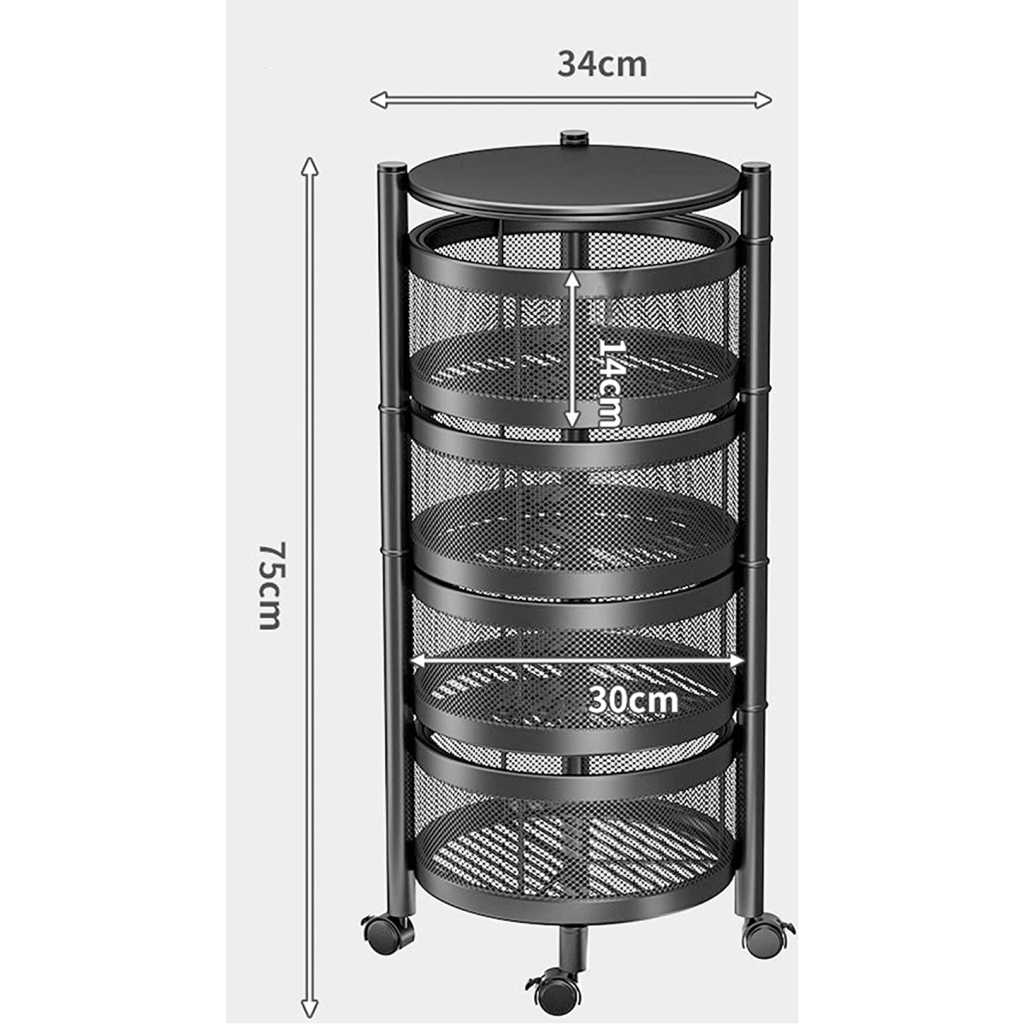 Vast Round Layered Shelf Storage Rack Kitchen Rotating Vegetable Rack Floor-Standing Multi-Layer Kitchen Storage Rack Household Storage Shelf For Kitchen Living Room(Size:4f). ☀【Multi-layer design & breathable】Modern, simple fashion, fits in all interiors, can be used as a kitchen shelf, shelf, dish organiser, microwave stand or other kitchen appliances. Encrypted breathable wire mesh basket keeps fruit and vegetables fresh, breathable top hollow, not easy to rot fruit and vegetables. ☀【With rotating basket】Rotating basket design, storage basket can be rotated freely, it is more convenient to receive Rotary, more convenient to receive, more versatile; the layer distance is enlarged on both sides of the fence protection to protect the goods does not slip, safer. ☀【360° free movement】 The top of the table can store items, no space is wasted and the solid material is not shaken. Place things smarter to meet your needs. With the universal 360° wheel for easy cleaning, free movement. Space-saving: This standing baker shelf provides more extra space for different purposes, e.g. for the kitchen office garage and more, and thus ensures a tidy and clear style. Widely used: It is a good choice to be your kitchen shelf, microwave stand, baker rack, spice rack organiser, kitchen worktop shelf. It is perfect for kitchen, living room, bedroom, bathroom.