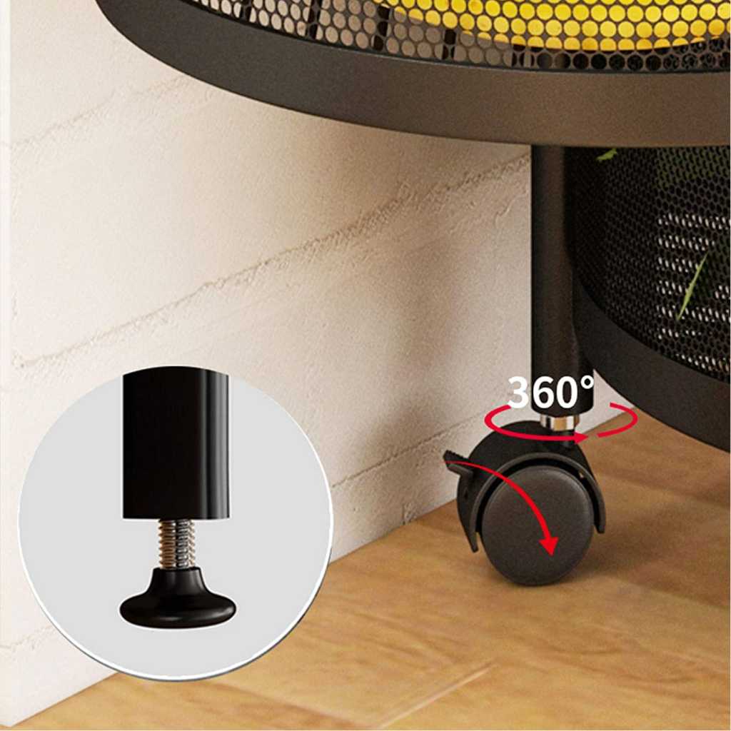 Key Features: Vast Round Layered Shelf Storage Rack Kitchen Rotating Vegetable Rack Floor-Standing Multi-Layer Kitchen Storage Rack Household Storage Shelf For Kitchen Living Room(Size:4f). ☀【Multi-layer design & breathable】Modern, simple fashion, fits in all interiors, can be used as a kitchen shelf, shelf, dish organiser, microwave stand or other kitchen appliances. Encrypted breathable wire mesh basket keeps fruit and vegetables fresh, breathable top hollow, not easy to rot fruit and vegetables. ☀【With rotating basket】Rotating basket design, storage basket can be rotated freely, it is more convenient to receive Rotary, more convenient to receive, more versatile; the layer distance is enlarged on both sides of the fence protection to protect the goods does not slip, safer. ☀【360° free movement】 The top of the table can store items, no space is wasted and the solid material is not shaken. Place things smarter to meet your needs. With the universal 360° wheel for easy cleaning, free movement. Space-saving: This standing baker shelf provides more extra space for different purposes, e.g. for the kitchen office garage and more, and thus ensures a tidy and clear style. Widely used: It is a good choice to be your kitchen shelf, microwave stand, baker rack, spice rack organiser, kitchen worktop shelf. It is perfect for kitchen, living room, bedroom, bathroom.