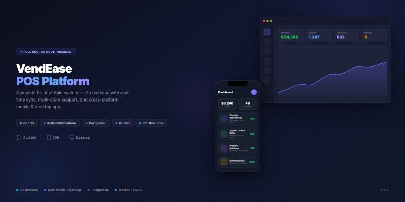 VendEase - Complete And Modern POS system. Complete POS system — Go backend with real-time sync, multi-store support & cross-platform Kotlin Multiplatform mobile/deskt