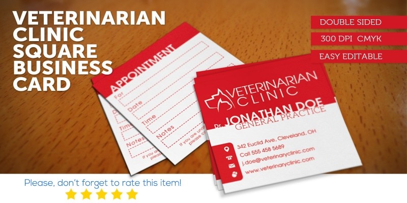 Veterinarian Clinic Square Business Card. Double-sided, square business card: the perfect business card for a veterinary doctor!