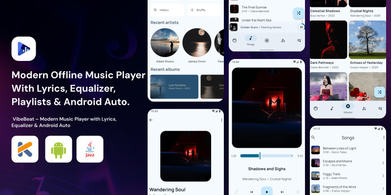 VibeBeat - Modern Music Player with Lyrics. Modern offline music player with lyrics, equalizer, playlists & Android Auto.