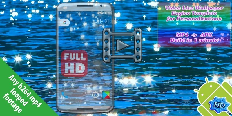 Video Live Wallpaper Engine Template For Android. This template allow to fast creating your own Live Wallpaper based on your footage looped videoclip with sound background.