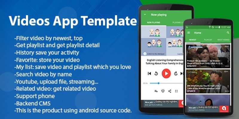 Videos Streaming - Android App Template. Would you like a video app? you can collect many videos on Youtube or streaming a video from another resource.