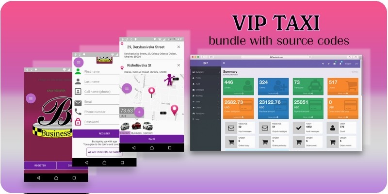 VIP Taxi - Android Source Code And Backend. Fullstack source codes packages with Database backend, Web API files and Android sources