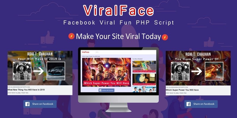 ViralFace - Facebook Viral Fun App PHP Script. make your site viral on social media, play quiz on facebook and play games