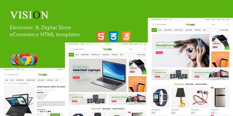 Vision - Electronic Digital Store HTML Template. Vision – is a clean and functional theme with vertical menu, perfect for your Electronic eCommerce store project.
