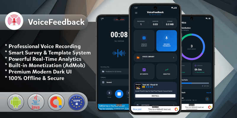 VoiceFeedback - Android App Template. Ultimate Voice Recorder & Feedback Survey Android Java Source Code