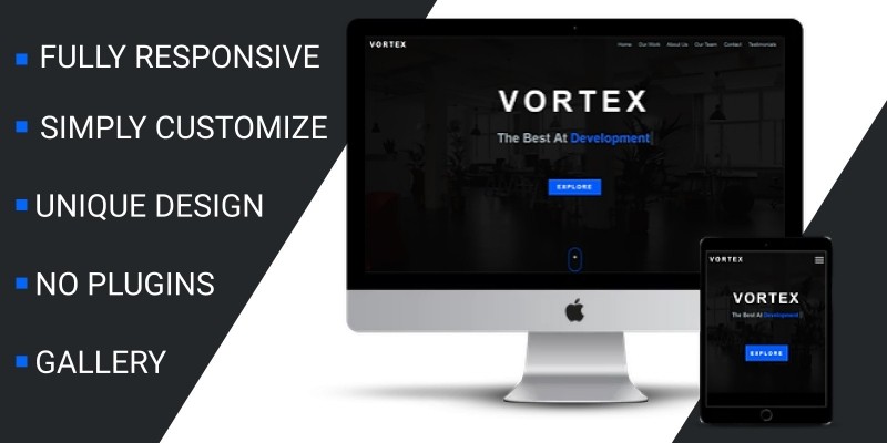 Vortex - One Page Theme. Vortex is a modern one page theme that is fully responsive and uses only original code (no plugins)