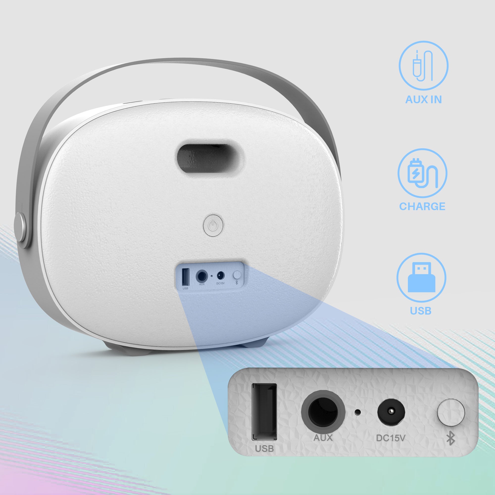 Key Features: PUNCHY BASS & 30W CRYSTAL CLEAR SOUND. Equipped with two tweeters and two woofers, integrated DSP chips, this speaker’s precise acoustic design ensures an extraordinary listening experience. ULTRA PORTABLE IN CHIC DESIGN. A perfect blend of style and sound, a sleek and stylish addition to your audio setup, designed to deliver an immersive music experience wherever you go. EXPERIENCE WIRELESS LIFE. With its built-in microphone, this speaker enables a hands-free phone call experience, allowing you to freely communicate with others while engaged in other activities. VERSATILE AND USER-FRIENDLY. Stream music easily from a USB device or connect via Bluetooth and AUX IN, which are compatible with mobiles, laptops, PCs, and any other music source devices.