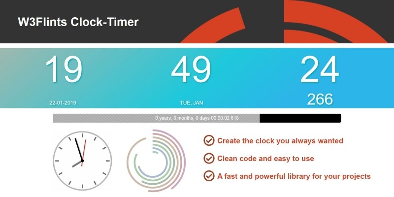 W3Flints Clock Timer JavaScript. A powerful, cross-browser and standalone clock engine written in pure Javascript