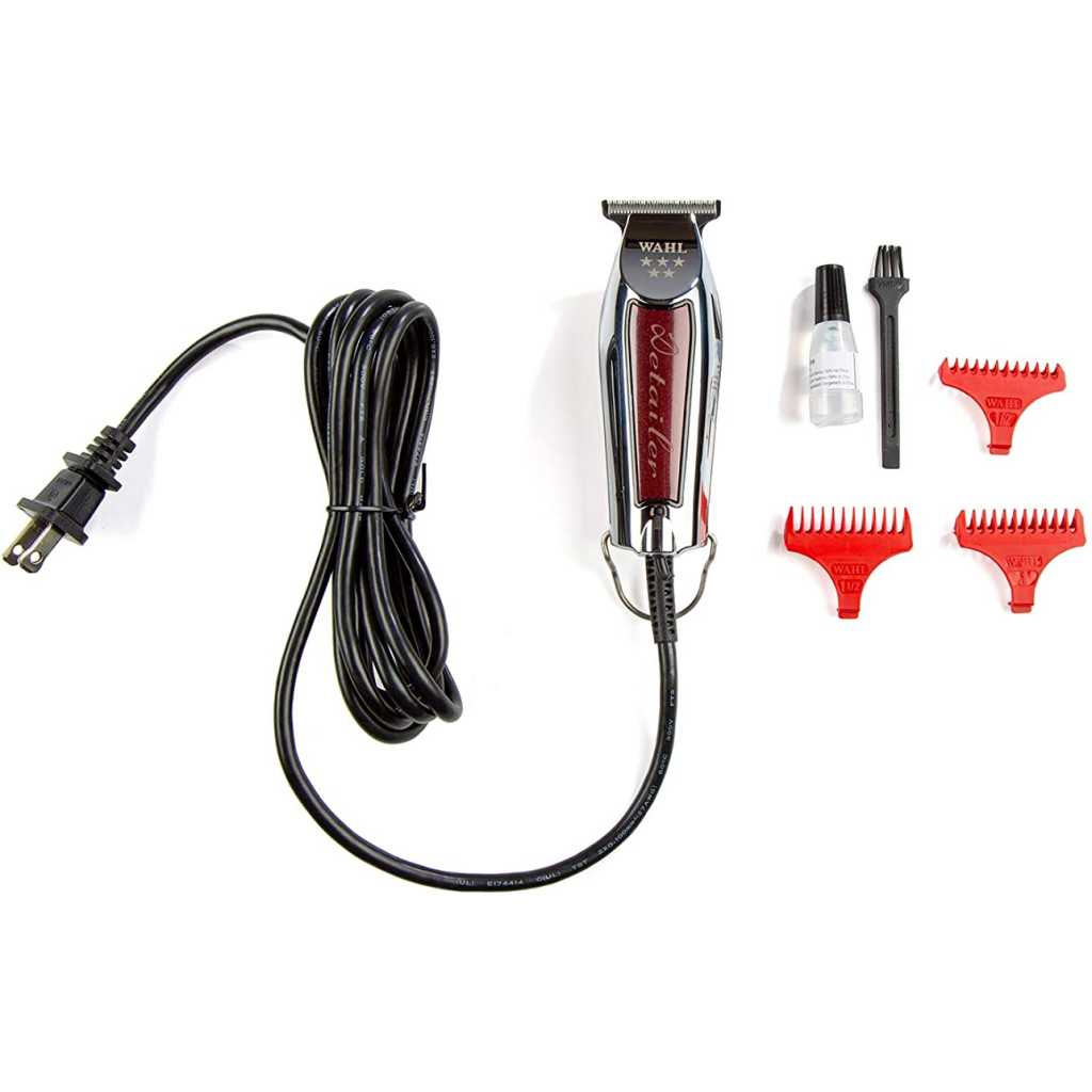 Key Features: Wahl Detailer Hair Clipper; Professional 5-Star with Adjustable T Blade for Extremely Close Trimming and Clean and Crisp Lines for Professional Barbers and Stylists – Model 808, Silver. Extra wide T blade which is 6mm wider that the standard Detailer Blade adjusts to Zero overlap, ideal for super close trimming, outlines and detail work Lightweight and stylish design provides balance and control Corded and powerful, cuts hair with speed and ease Weight 374g Cutting length 0.4mm