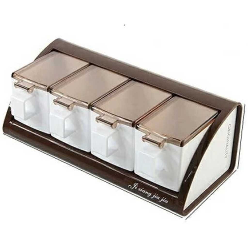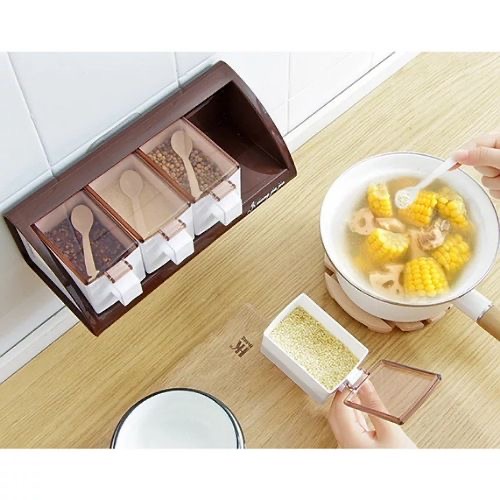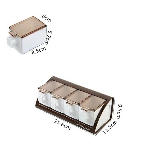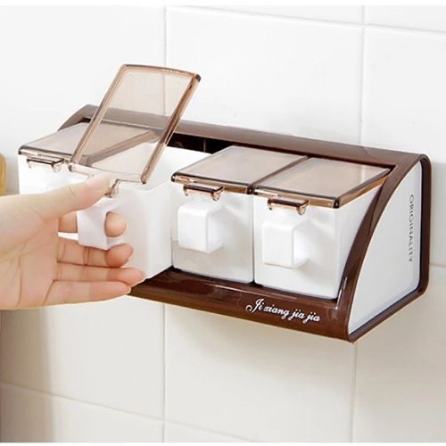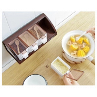Made of premium plastic material, BPA-free, non-toxic and durable. Good tool for all kinds of condiments: sugar, salt, jams, red pepper flakes, granulated garlic, any spice you like. Smart way to organize your kitchen, this little spice containers organizer may be do much help for your big party dinner Press-type cover opening, easy to use. Comes with wall mountable seasoning box holder for more convenient use. Each little spice jar is equipped with a spoon. Specification:Condition: Material: Plastic, Size: approx.19.5*11*9cm / 7.68*4.33*3.54in, Package List:1* Seasoning Container Key Features: Made of premium plastic material BPA-free, non-toxic and durable. Good tool for all kinds of condiments Smart way to organize your kitchen Press-type cover opening, easy to use. Comes with wall mountable seasoning box holder for more convenient use.