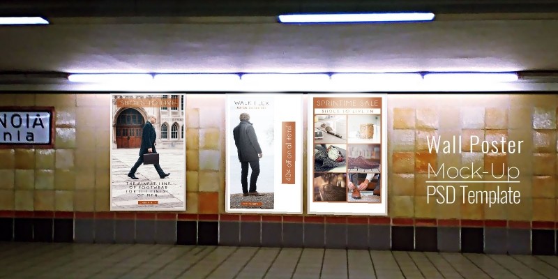 Wall Posters Mock-Up - PSD Template. Three Posters on Wall Mock-Up - Easy Editable PSD Template
