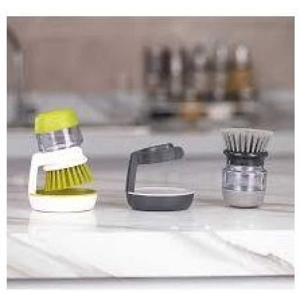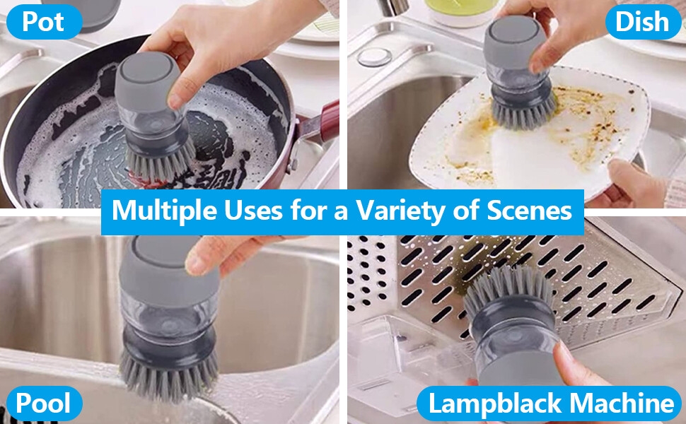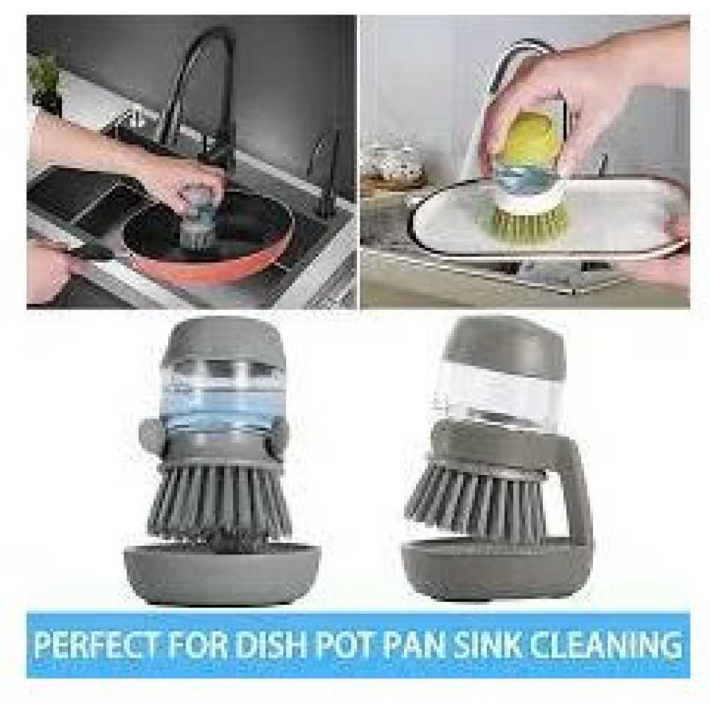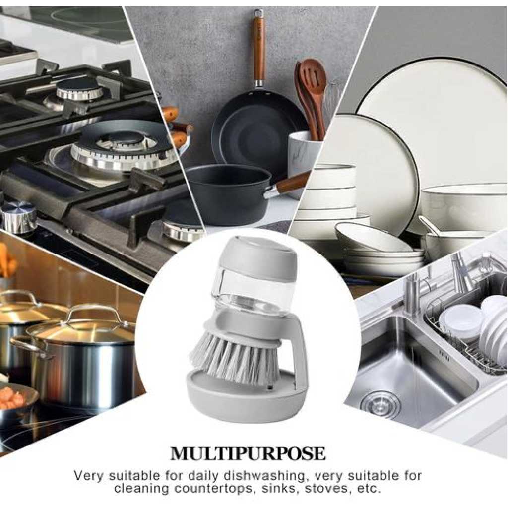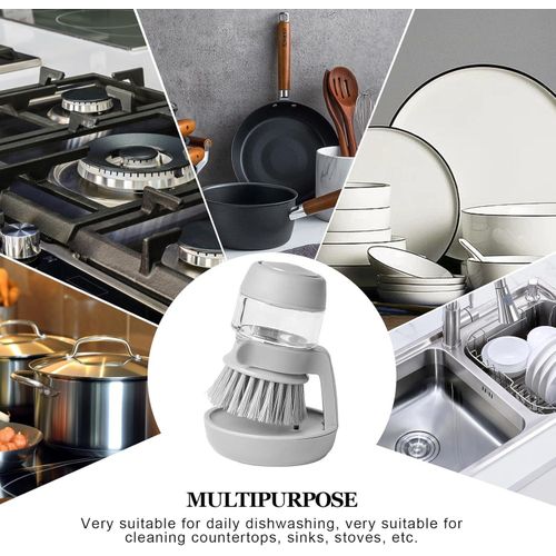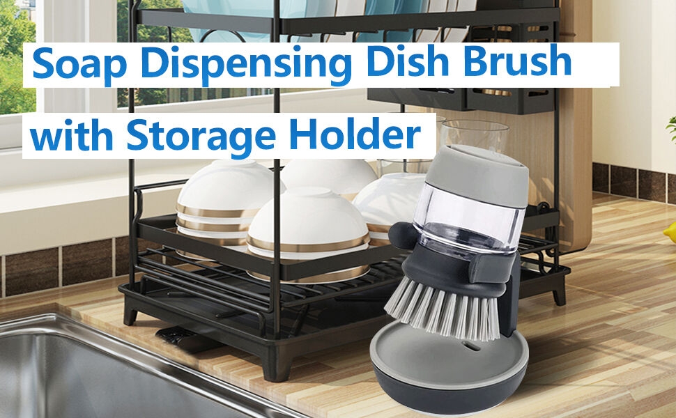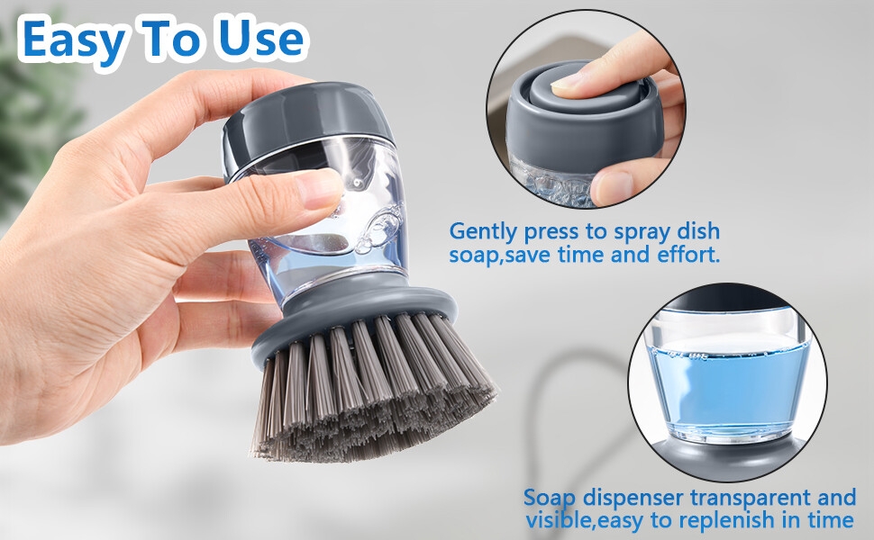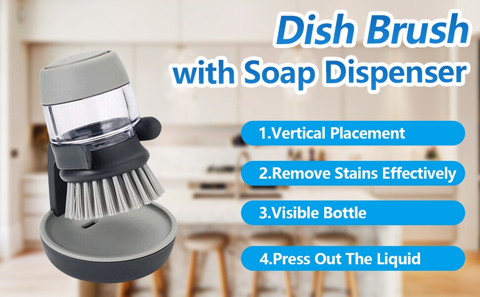 Key Features: 【High Quality Material】Dish brush is made of high quality nylon bristles, plastic and silicone, with moderate hardness, toughness and durability. The scratch-resistant, odorless bristles effortlessly remove grease and grime and are safe for use on nonstick cookware. You can use dish washing brush with confidence. 【Comfortable Grip】Cleaning brushes contoured shape fits snugly in the palm of your hand and is also covered with silicone, making it non-slip even when wet and soapy, so you don’t have to apply a lot of pressure. washing up brush can be easily filled with your favorite dish soap, making it more convenient to use. 【Anti Slip Stand】Kitchen brushes for dishes has an anti-slip stand that can catch water droplets and keep the desktop dry. After cleaning, simply insert the brush head into the storage tip to store. The sturdy storage rack allows the brushes to drip and dry naturally, making them convenient to use and not staining the countertop. 【Easy to Use】Our kitchen scrub brush with soap dispenser size is 12×9 cm. Turn the top counterclockwise to open, inject soap to fill the body and lock clockwise. Tap the top button and washing brushes for dishes will spray soap. The brush head is easy to remove and replace. 【Widely Used】Use dishwashing brush to clean pans, pots, plates, glassware, sinks, stoves and kitchen utensils. washing up brushes for kitchen is also great for cleaning cast iron, countertops and windows. The cleaning brush prevents your hands from coming into direct contact with the cleaner.