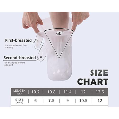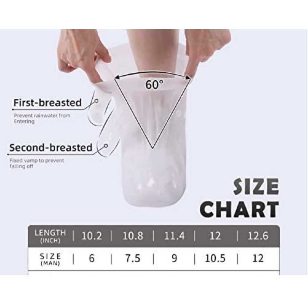 Waterproof Rain Shoe Covers, Reusable Foldable Non-Slip Ankle High Boots Outdoor Cycling Walking Hiking Shoe Protectors – White. Waterproof sturdy PVC material, seamless design keeping your beloved shoes and boots dry and clean, extending the lifetime of your footwear. The adjustable buckle with buttons makes it perfectly matched to the shoes, preventing rain from entering the shoe cover from the top. The soft outsoles are non-slip, the small sucker has excellent traction on wet and muddy ground, and there will be no chance of losing your grip on slippery surfaces. Perfectly suitable for people who have to go out on rainy/snowy days and outdoor activities such as camping, hiking, fishing, gardening etc; Item Name: Overshoes Material: PVC Quantity: 1 Pair Features: Unisex, Thicken, Waterproof, Anti-slip [Our Size 30-31]: Length: 23.5cm/9.25″ (Approx.) [Our Size 32-33]: Length: 24cm/9.44″ (Approx.) [Our Size 34-35]: Length: 25cm/9.84″ (Approx.) [Our Size 36-37]: Length: 26cm/10.23″ (Approx.) [Our Size 38-39]: Length: 27.5cm/10.82″ (Approx.) [Our Size 40-41]: Length: 29cm/11.41″ (Approx.) [Our Size 42-43]: Length: 30.5cm/12.00″ (Approx.) [Our Size 44-45]: Length: 32cm/12.59″ (Approx.)Pair of Overshoes Waterproof sturdy PVC material, seamless design keeping your beloved shoes and boots dry and clean, extending the lifetime of your footwear. The adjustable buckle with buttons makes it perfectly matched to the shoes, preventing rain from entering the shoe cover from the top. The soft outsoles are non-slip, the small sucker has excellent traction on wet and muddy ground, and there will be no chance of losing your grip on slippery surfaces. Perfectly suitable for people who have to go out on rainy/snowy days and outdoor activities such as camping, hiking, fishing, gardening, etc;