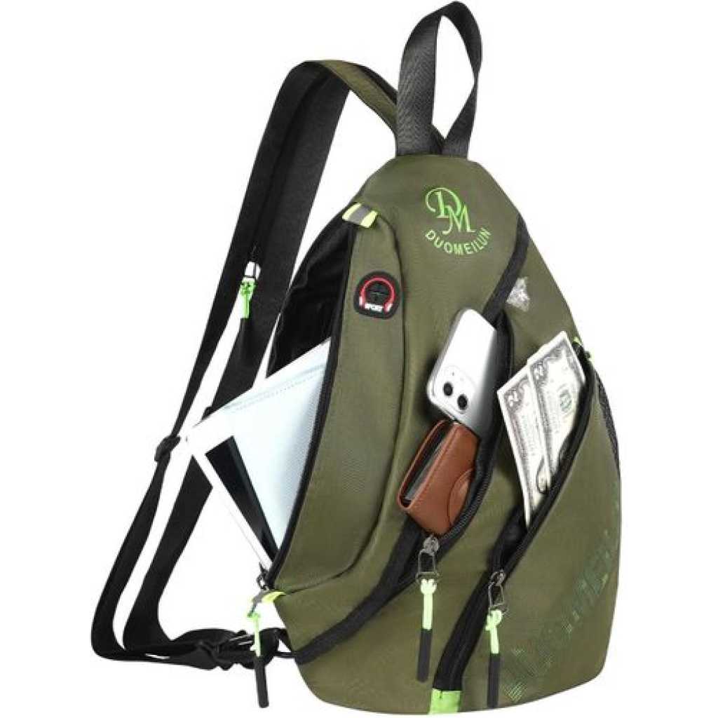 Waterproof and Durable: This backpack is made of polyester material with SBS zipper. It is waterproof, easy to clean and anti-friction to effectively prevent tearing, wetting and tearing. High quality smooth zipper for easy access Large Capacity: stylish backpack size: 4.2*10.6*15.7IN. You can put your notebook, cell phone, book, umbrella and cup in it. You can even use it to travel and pack your shoes and clothes. There is a net bag on the side to hold a water cup for easy drinking. Shoulder/Crossbody/Hand Bag: Our versatile backpacks can be carried on both shoulders (unzipper the shoulder strap) or crossbody (zip the shoulder strap up), and there is a handle at the top of the backpack for you to carry around as a handbag. The length of the adjustable shoulder strap is 31-40 inches and can be adjusted to a comfortable position according to personal preference Headphone jack + Internal pocket:There is a headphone jack on the shoulder bag for listening to music anytime. The large bag has a hidden pocket that can safely store items such as bank cards or passports, reducing the risk of theft. Protect your ID card, bank card or mobile phone from being scanned and stolen. Multi-purpose Sling Bag: Weighing just 0.66 LBS, this sling bag is lightweight and comfortable to carry. Can be used as sling bag, sling backpack, crossbody bag, hiking backpack, chest backpack, travel bag, leisure backpack, shoulder bag, very suitable for travel, fitness, hiking, camping, cycling, day trip, office and other occasions. It is a good travel gift.