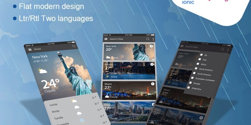 Weather Today - Ionic App Template. iTwo Language LTR/RTL ionic theme for weather/Climate app.