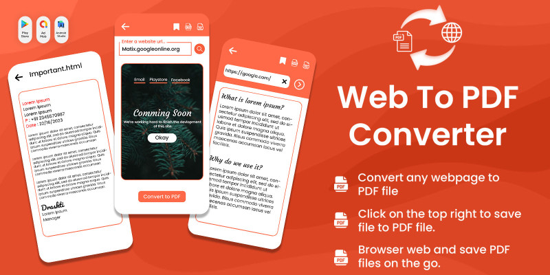 Web to PDF Converter - Android App Template. Web To PDF,HTML is a utility based multi-purpose application that helps you to convert a webpage to PDF and save it on your device