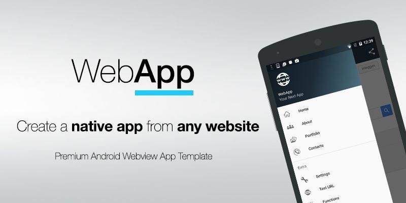 WebApp - Premium Android Webview App Template. Convert any website into a native Android app using Webview.