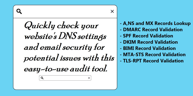 Website DNS and Mail Security Audit Tool. Quickly check your website's DNS settings and email security for potential issues with this easy-to-use audit tool.