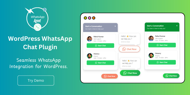 WhatsApp Agent - WordPress Support Chat . WhatsApp chat plugin with multiple agents support for WordPress.
