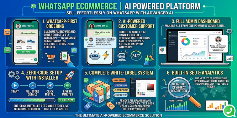 WhatsApp AI Store Order Management System. A WhatsApp-first eCommerce system with AI support, smart order management, and a powerful admin panel. Zero coding required.