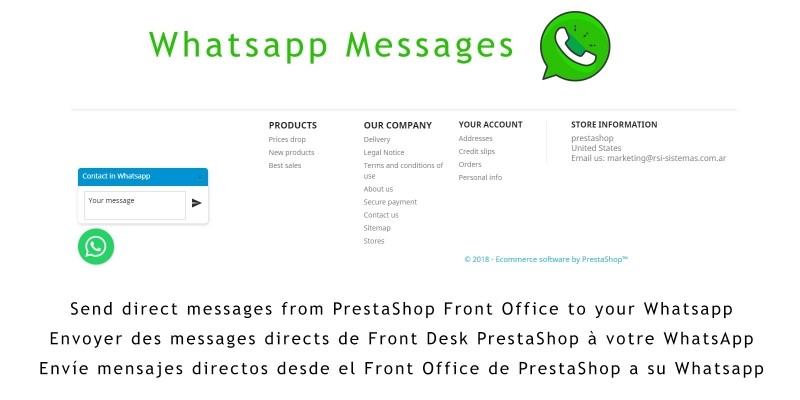 WhatsApp Messages PrestaShop Module. WhatsApp Messages allows you to send messages through your PrestaShop website directly to your phone.