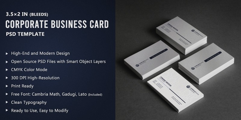 White Corporate Business Card. High-End and Modern Corporate Business Card Template to your Company