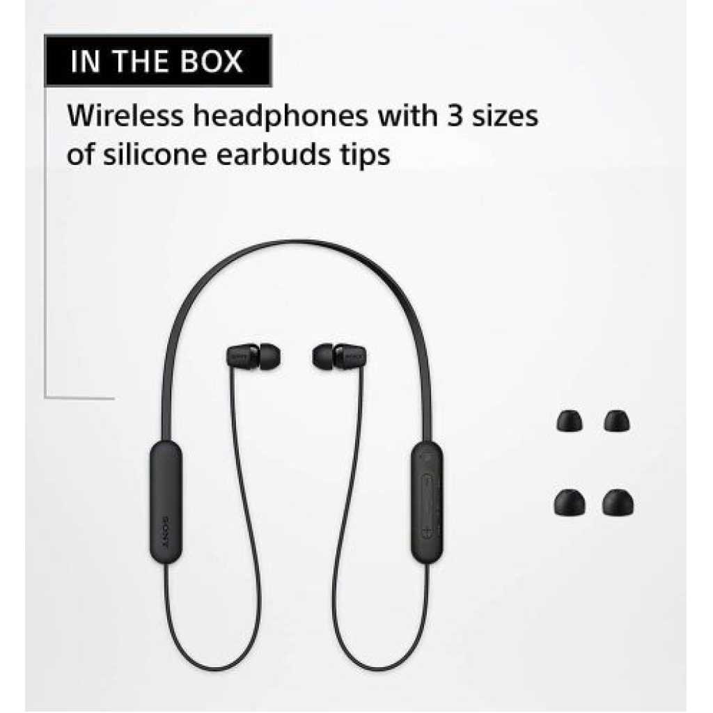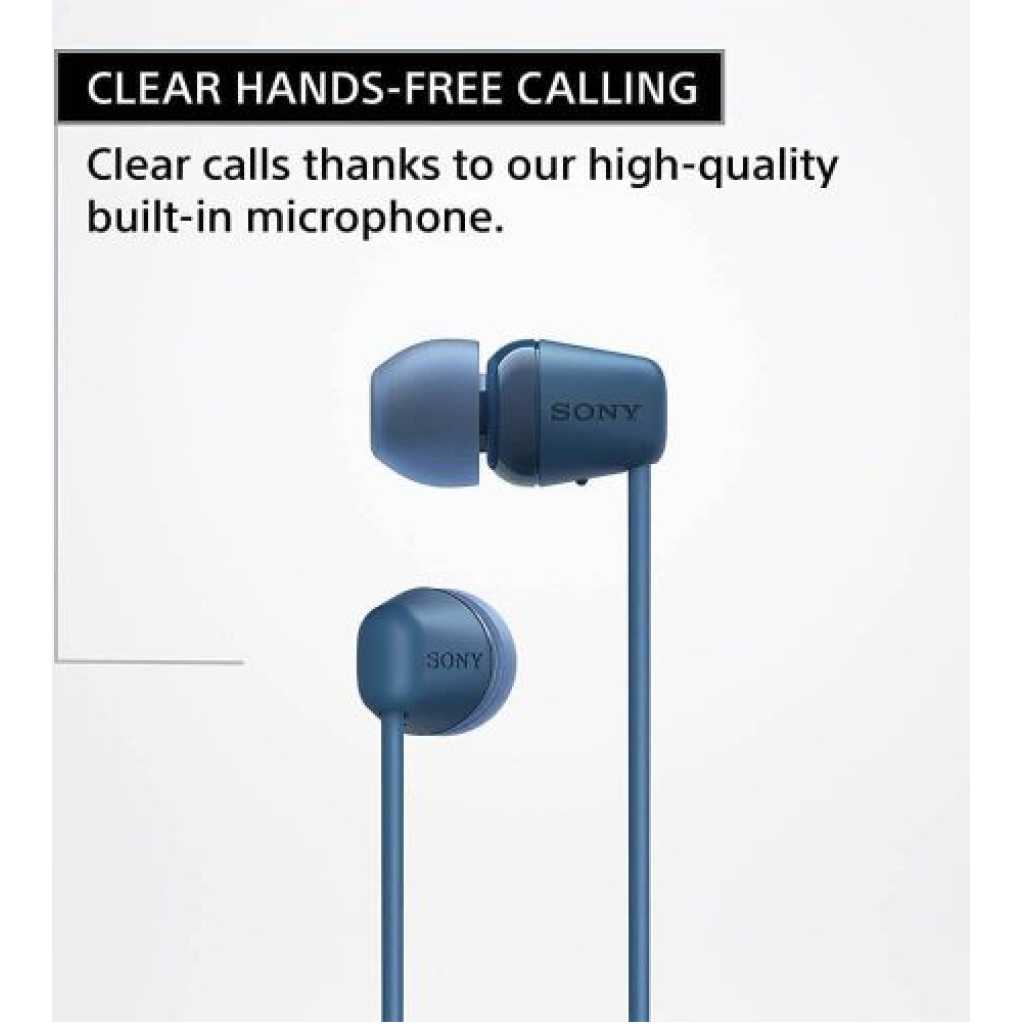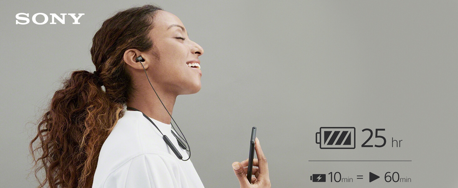 From the manufacturer WI-C100 Made for the day ahead Wireless In-ear Headphones Long Battery Life Enjoy up to 25hrs of battery life for non-stop listening. And if your headphones are running low on power, a 10-minute quick charge will give you up to 60 minutes of playback. Splash-proof and sweat-proof with an IPX4 rating With an IPX4 water resistance rating, splashes and sweat won’t stop these headphones – so you can keep on moving to the music. DSEE – Give your favorite music a boost When an original musical file is compressed our Digital Sound Enhancement Engine faithfully restores music to high-quality sound that’s closer to the original recording. Flexible neckband Lightweight and portable, the WI-C100 headphones have a flexible neckband that makes them even easier to slip into your bag when you’re on the move. Easy to use buttons The WI-C100 headphones are easy to operate, with buttons to play and pause, skip tracks, adjust the volume, and receive calls. For convenience, the buttons have been redesigned, with a more pronounced shape making them easier to press. Clear hands-free calling Conversations flow freely with clear hands-free calls thanks to our high-quality built-in microphone. Your sound, how you like it Fine-tune your sound using the Sony | Headphones Connect app. Fast Pair Quickly and effortlessly pair your headphones with your Android device with just a simple tap. Experience 360 Reality Audio Sound as real as if you are there at a live concert or with the artist in the recording studio. Note : If the size of the earbud tips does not match the size of your ear canals or the headset is not worn properly in your ears, you may not obtain the correct sound qualities or call performance. Change the earbud tips to ones that fit more snugly in your ear Long battery life of up to 25 hours DSEE restores high frequency sounds lost in compression Splash-proof and sweat-proof with an IPX4 rating Easier, clearer hands-free calling Fine-tune your sound using the Sony | Headphones Connect app Easy to operation with buttons to play and pause, skip tracks and adjust the volume A well-balanced shape around the neck ensures a stable fit The WI-C100 headphones have a flexible neckband that fits to you Sync your headphones easily with Fast Pair.