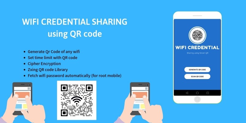 WiFi Credential Sharing using QR Code Android. Share wifi using Qr code for limited time after that time wifi will automatically removed from other users mobile.