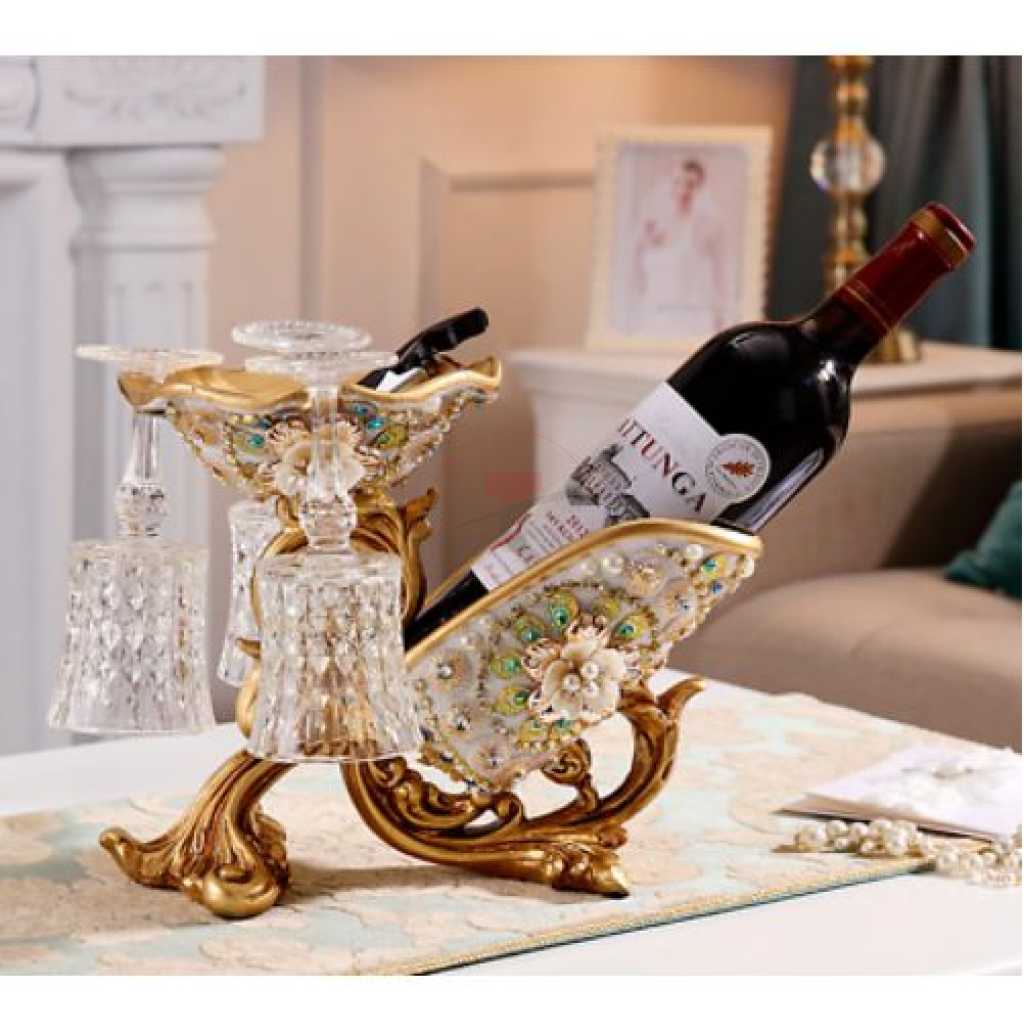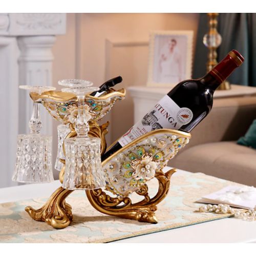 Wine Bottle Holder Floral Vintage Resin Home Decor Glass Stand Rack Bar- Gold. This wine bottle holder is stylish and elegant. It is made of resin and decorated and embellished with flowers, synthetic pearls, crystals, and beads. With superb quality and design, it upgrades any room to a classic European luxurious ambiance. Makes a perfect gift for someone special or for personal use. Not just a stylish decor but also a practical wine bottle and wine glass holder. 100% brand new and shows great craftsmanship. Stable structure, which ensures the safety of your wine. The color is vivid and sharp and won’t fade in color. Very suitable for dining room, bar, kitchen, and other interior space decoration. Specifications:Material: Resin Package list:1* Wine Bottle Holder