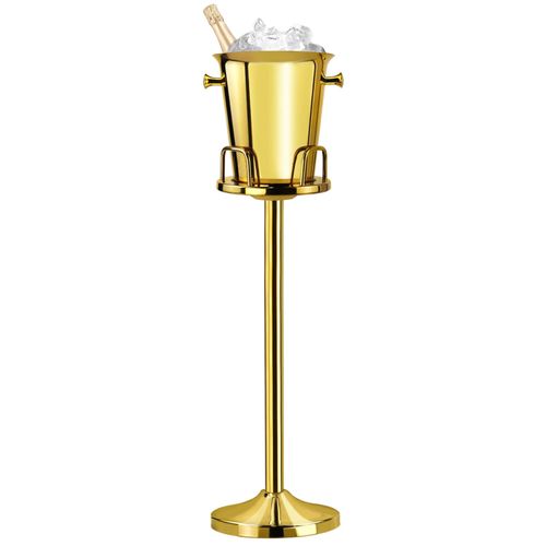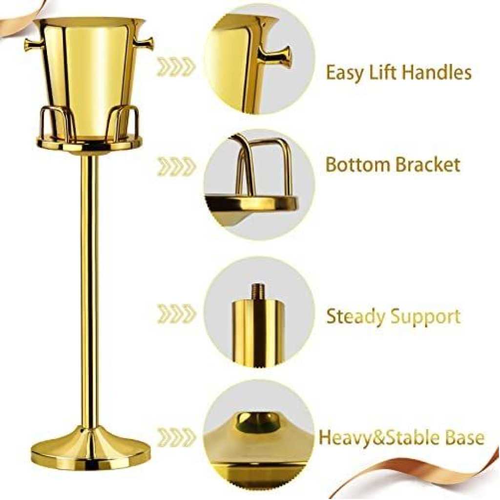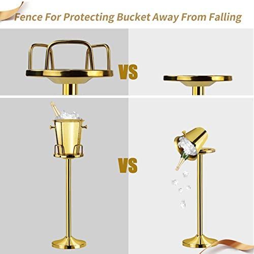 Wine Champagne Ice Bucket Stand Rack Without The Bucket – Gold. Save space on your dining table with the stylish yet practical Folding Champagne Bucket Stand. This stainless steel stand is perfect for use with the Stainless Steel Champagne Bucket , also from bar@drinkstuff, ideal for keeping your favorite bottle of bubbly on ice. Long-lasting Cold Storage: The gold champagne bucket stand can keep your attractive wine, champagne, beer, or drinks cold for 3-6 hours. When at a party, you will not worry about the champagne being not COOL enough. Widely Applicable Scenarios: Floor standing gold champagne bucket is perfect for barbecues, parties, bars, weddings, KTVs, clubs, restaurants, even dating, etc. occasions you can think of! The wine cooler with stand is a beautiful scenery when you at the above-mentioned occasions. Clean&Transport Easily: Party bucket cooler for your champagne with stand can be easily removed. The ice bucket and the bucket rack are separated after simple installation. Special Charming Gold: This wine chill bucket stand with luster and polished gold, looks elegant, nobility, and sparkle. Not only is it a wonderful decor, but this champagne cooler bucket stand also has any function you need. Key Features: Wine Champagne Ice Bucket Stand Rack Without The Bucket – Gold. Floor stand for champagne bucket Folding design for storage Stainless steel Ideal height for most tables Fits the Stainless Steel Champagne Bucket from Chabrias Height 29 ½ Inches